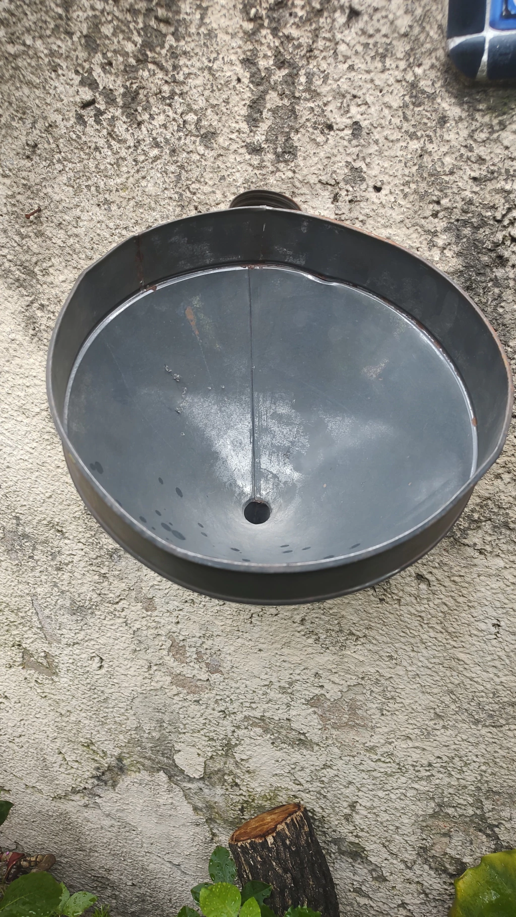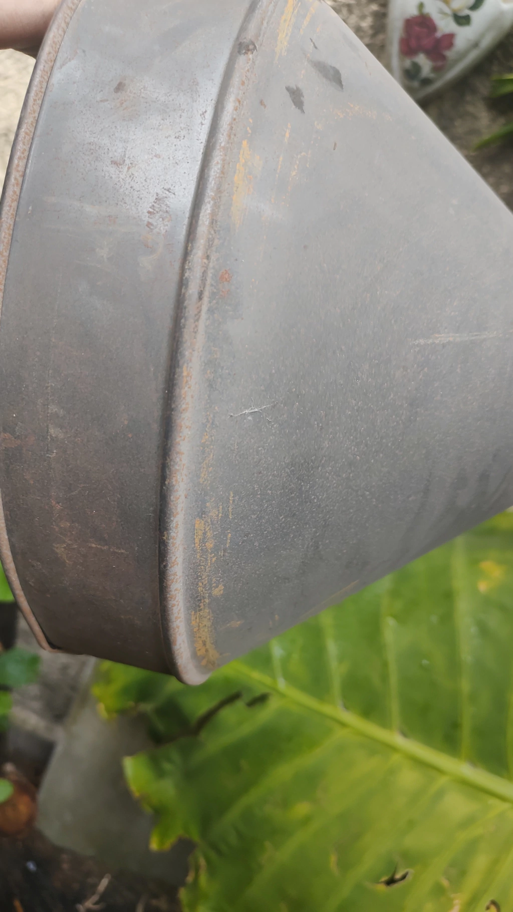 Embudo muy viejito de zinc .28 cm diámetro x 31 alto.